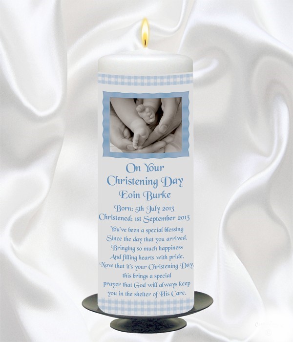 Beautifully personalised christening 9-inch candle. Can be personalised on ivory or white candles with baby’s name, date of birth, date of christening, church name, god-parents’ names etc.
