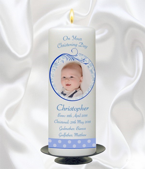 Beautifully personalised christening 9-inch candle. Can be personalised on ivory or white candles with baby’s name, date of birth, date of christening, church name, god-parents’ names etc.