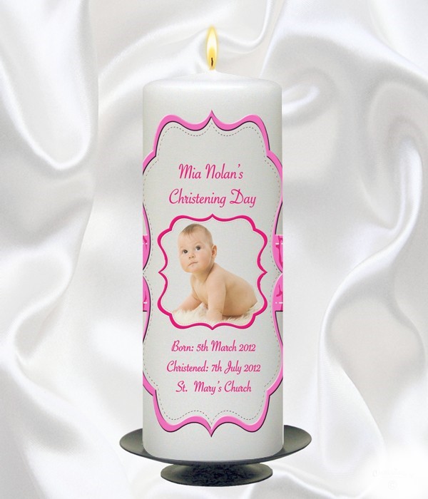 Girl Scroll Photo Candle – 9″ Pillar