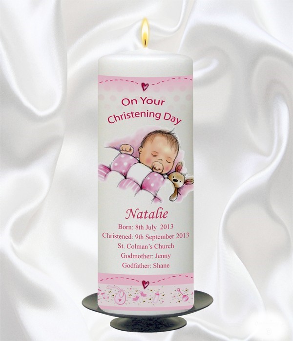 Beautifully personalised christening 9-inch candle. Can be personalised on ivory or white candles with baby’s name, date of birth, date of christening, church name, god-parents’ names etc.