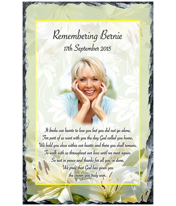 If this slate requires a photo, please email your photo to ballybofeyflorist@eircom.net along with your name, contact details and reference number.