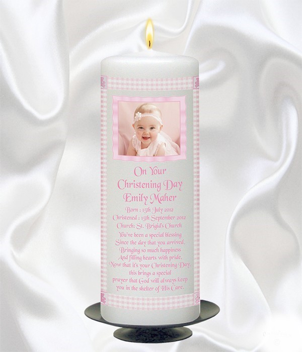 Beautifully personalised christening 9-inch candle. Can be personalised on ivory or white candles with baby’s name, date of birth, date of christening, church name, god-parents’ names etc.