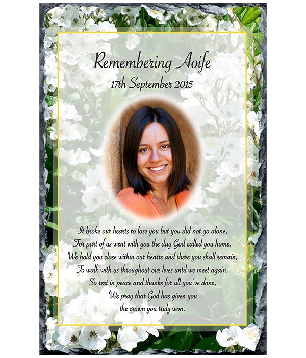 If this slate requires a photo, please email your photo to ballybofeyflorist@eircom.net along with your name, contact details and reference number.